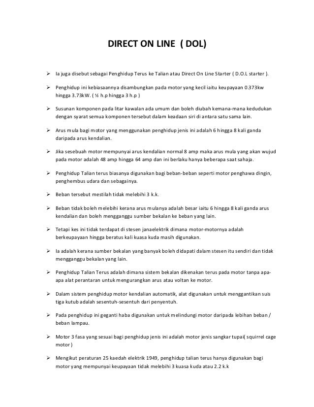 Apr 25 2019 Apabila punat tekan henti dilepaskanarus tidak dapat memasuki litar kawalan dan litar utama terutama gegelung seterusnya tidak dapat menghasilkan medan magnet. Dol direct on line starter of three phase motor using a contactor and no nc push buttons duration. Oct 29 2020 Kendalian litar kawalan penghidup talian terus dol statar arus elektrik 240v akan mengalir masuk melalul penyambung l terus ke punca 1.
